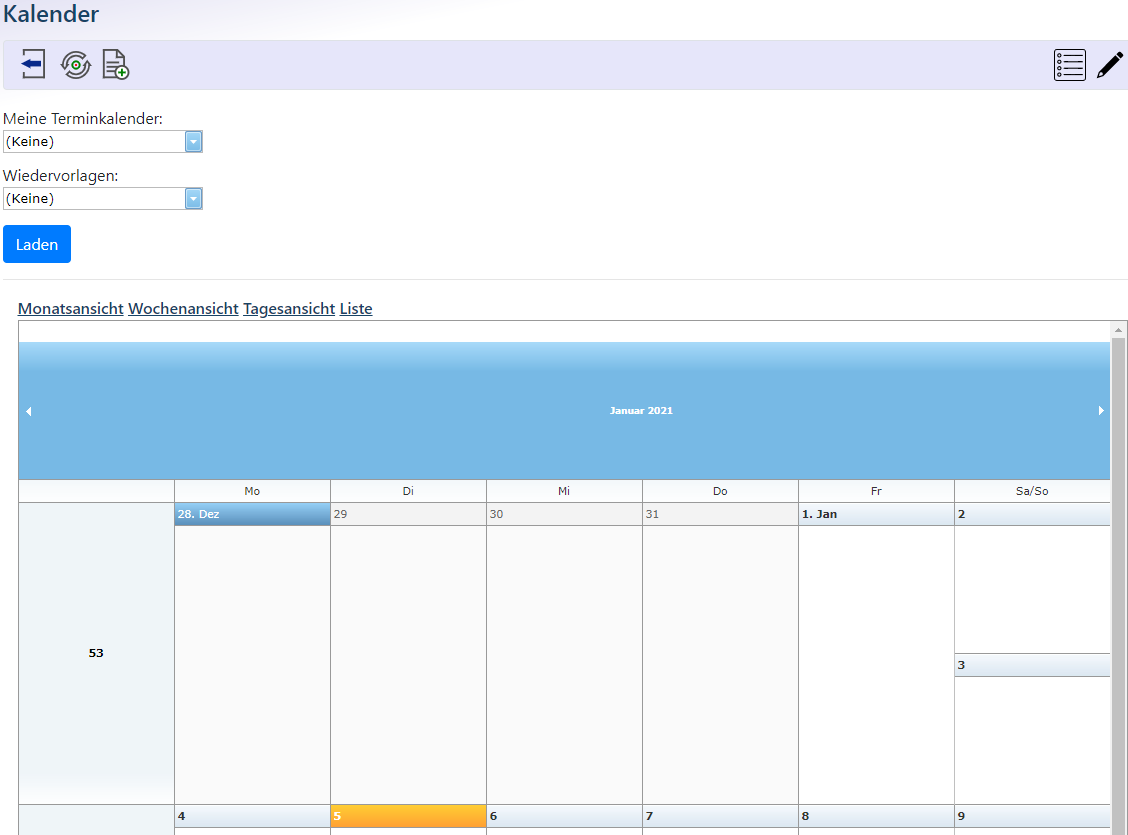 Hier können Sie die für Ihren Benutzer-Account freigegebenen Kalender einsehen.
